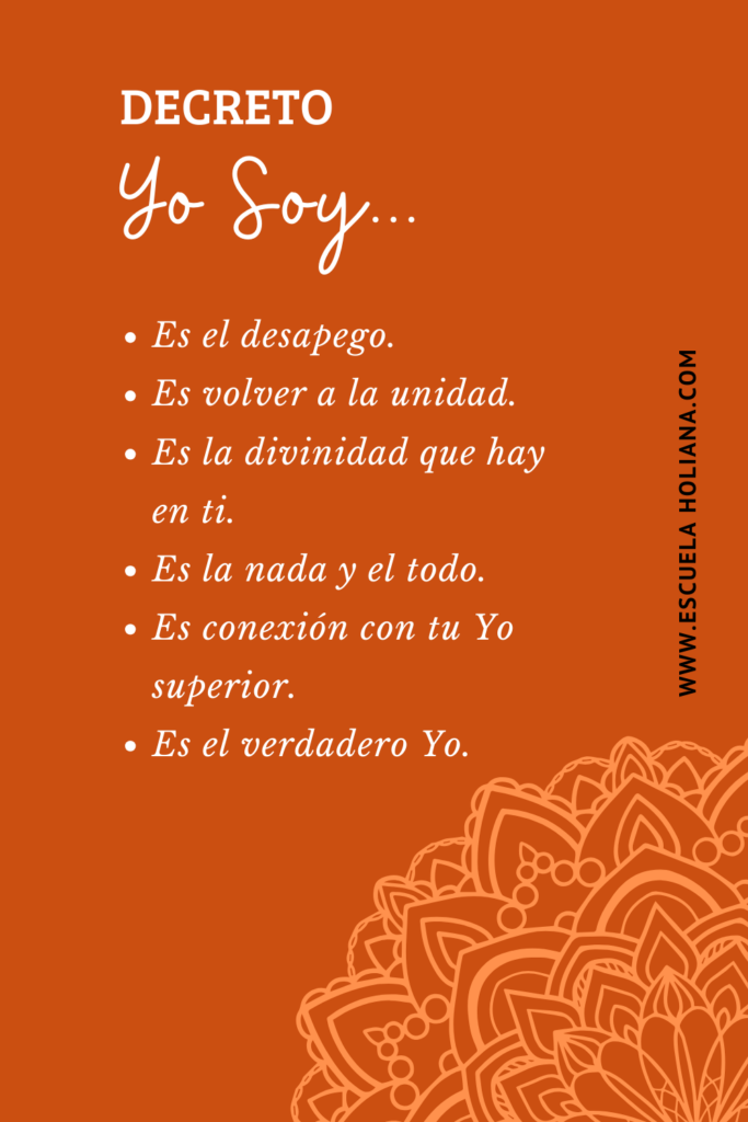 El decreto “Yo Soy” es la manera en que definimos el Uno, el poder de la conciencia, la comunión con la divinidad. Este decreto nos ayuda a conectar con lo esencial y con nuestra verdadera esencia.