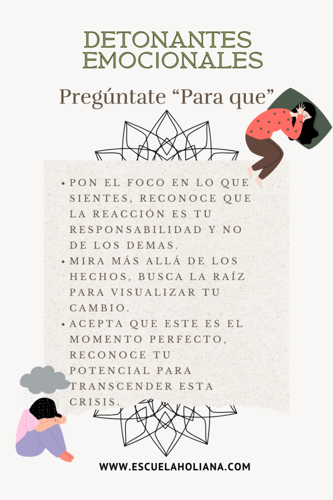 Detrás de un detonante emocional puede haber muchas razones. Trataré de guiaros en el descubrimiento de “vuestra propia causa”.